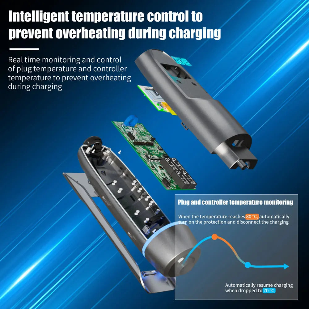 [High Safety] Our electric vehicle chargers use high-strength ABS materials to provide better quality and high durability. Our chargers have safety protection measures such as overcurrent protection, overvoltage protection, undervoltage protection, leakage protection, and overheating protection, with a waterproof grade of IP65.