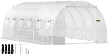 All Tools Included: The hoop house greenhouse is easy to assemble with connectors, and screw covers can prevent scratches and rust.Includes 4 ropes, stakes, and guy ropes for added security, stability, and strength. Note: Do not tighten screws until the final position is confirmed.
